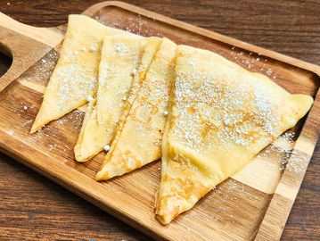 Delicate Crêpe made with flour, eggs, milk, butter, sugar, and a pinch of salt for rich, buttery flavor