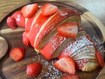 Homemade Croissant infused with strawberry and filled with strawberry cream